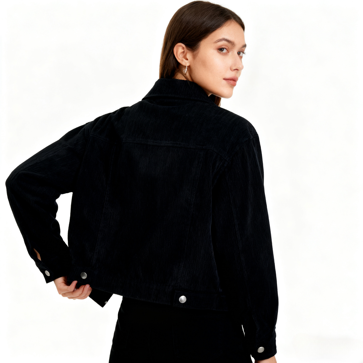 Black Corduroy Fine-textured Women’s Casual Jacket
