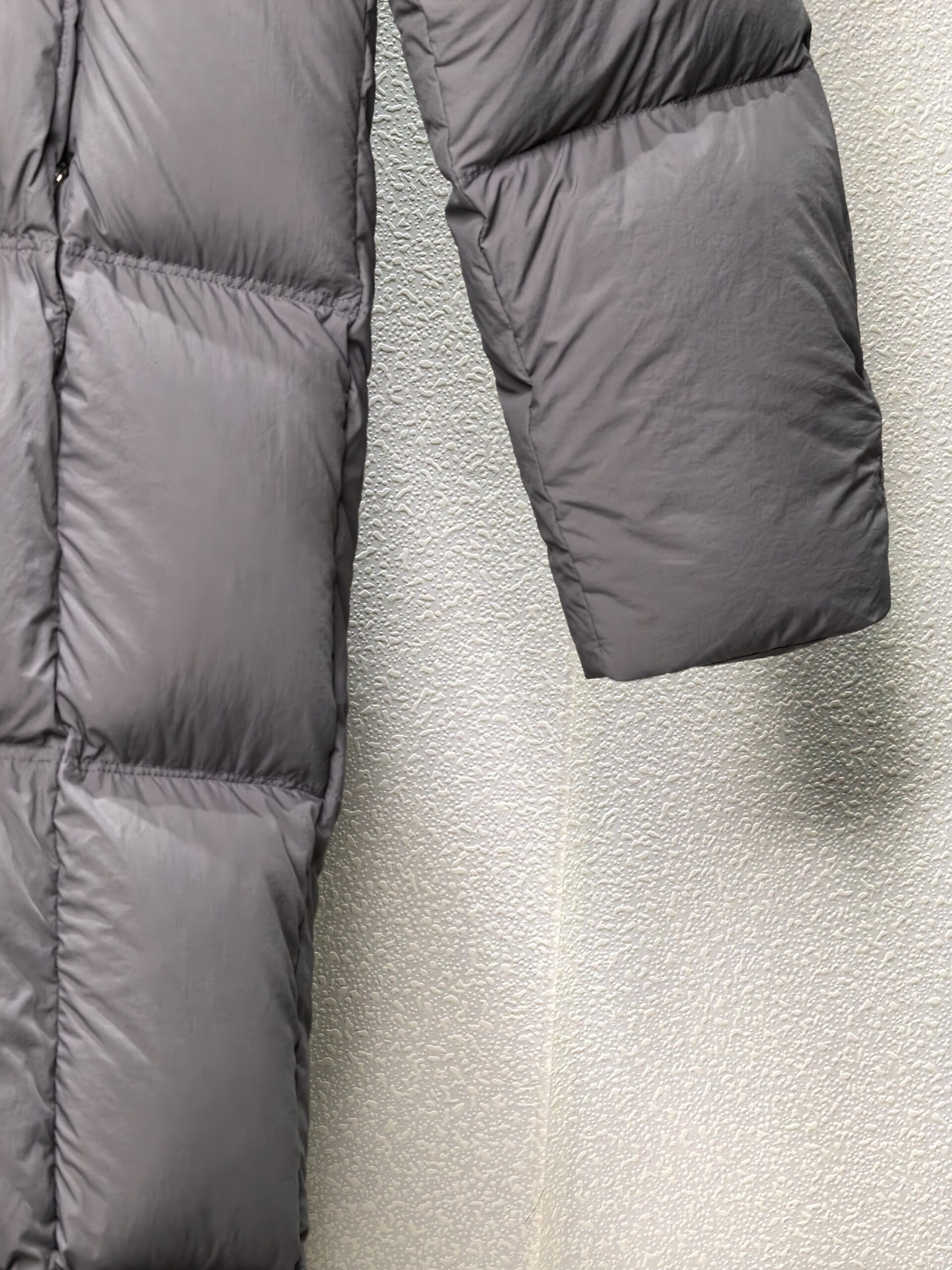 Fabric and Filling: The jacket’s exterior fabric is crisp, while the interior is generously padded, featuring neatly quilted checkered pattern, ensuring warmth and adding a three-dimensional aesthetic.