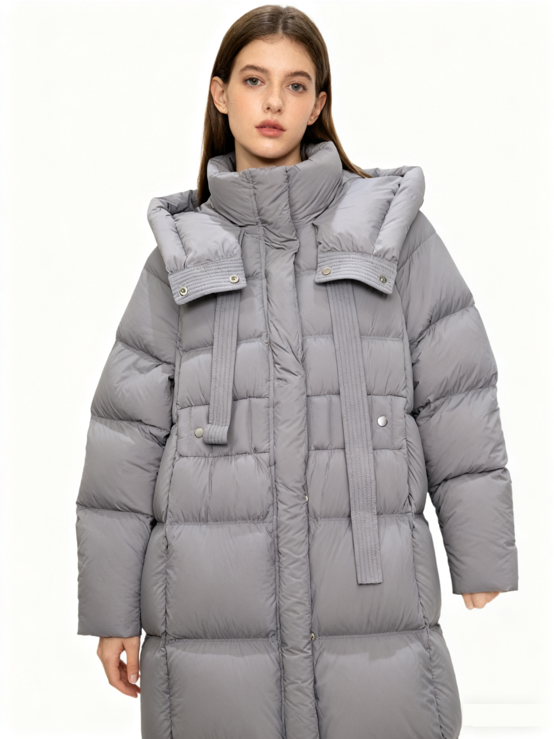 High-Grade Gray Long Women’s Puffer Jacket Coat for Warm Suitable for Winter