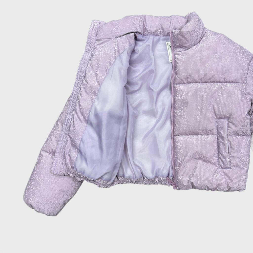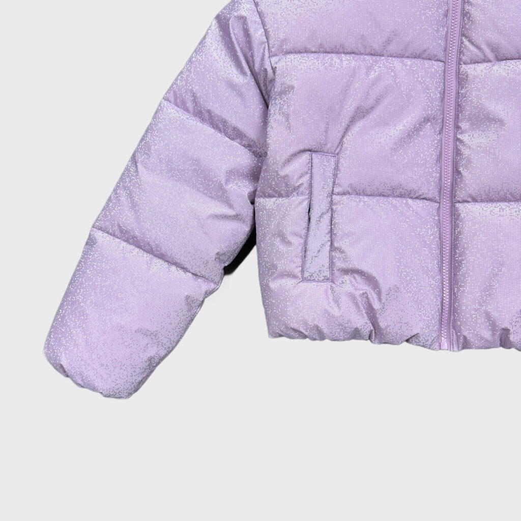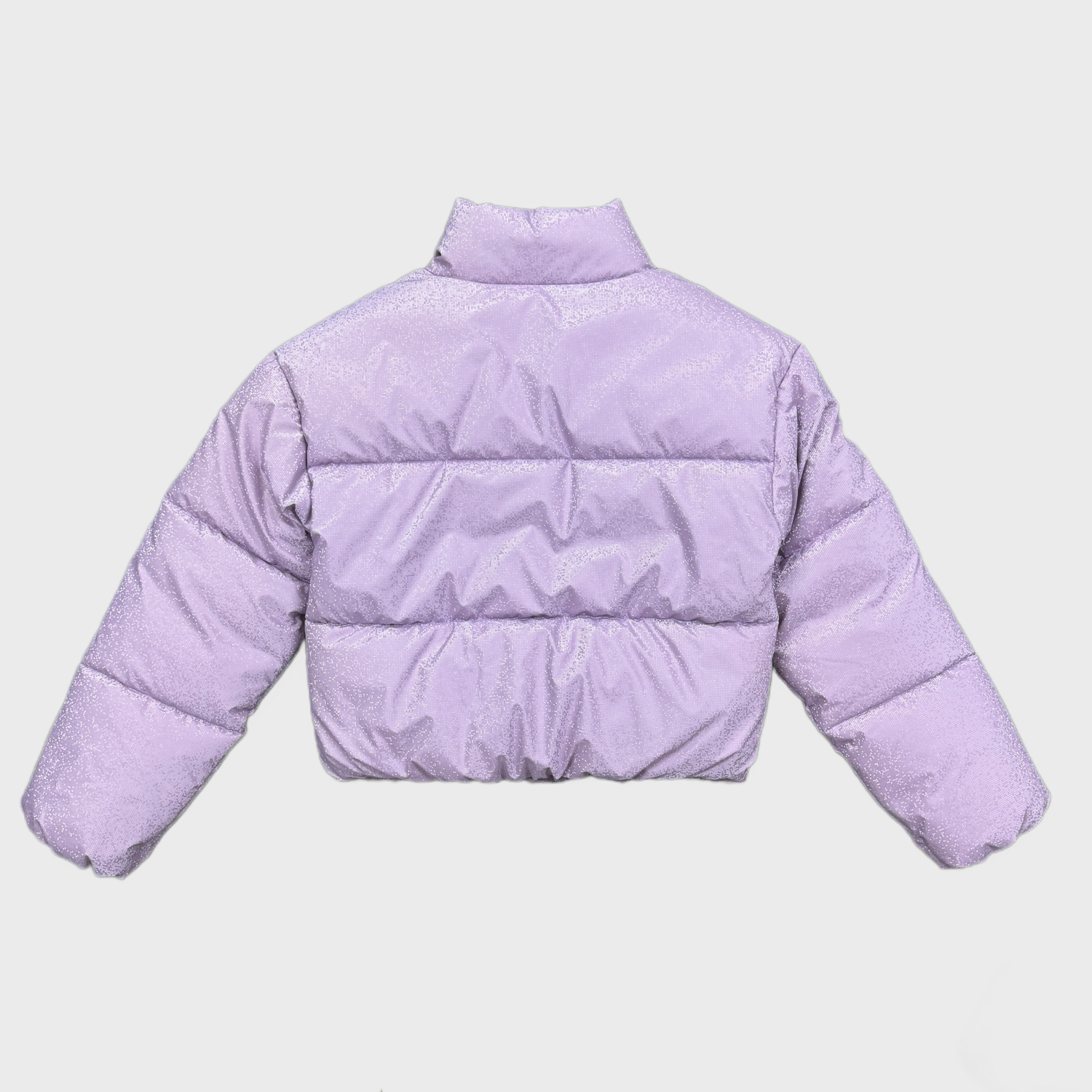 Lavender purple Short Puffer Jacket for Girls with Release Paper Fabric