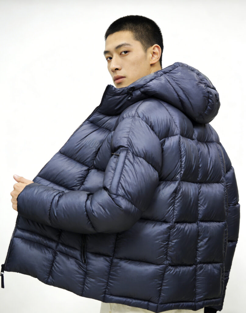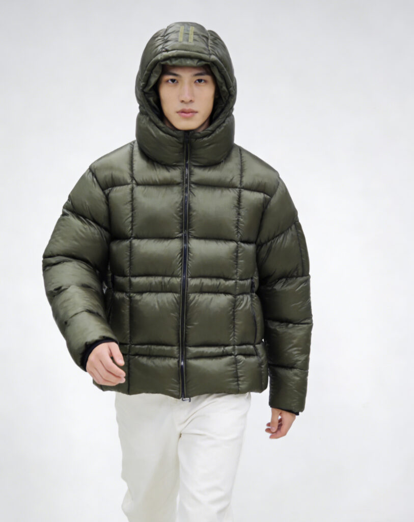 Filled with high-loft insulation, it delivers exceptional heat retention without the bulky feel of traditional outerwear, making it perfect for daily commutes and casual outings. The grid-quilted construction ensures even insulation distribution for consistent warmth, while the matte metallic nylon fabric offers a subtle, sophisticated sheen along with wind-resistant and water-repellent properties to tackle inclement weather.