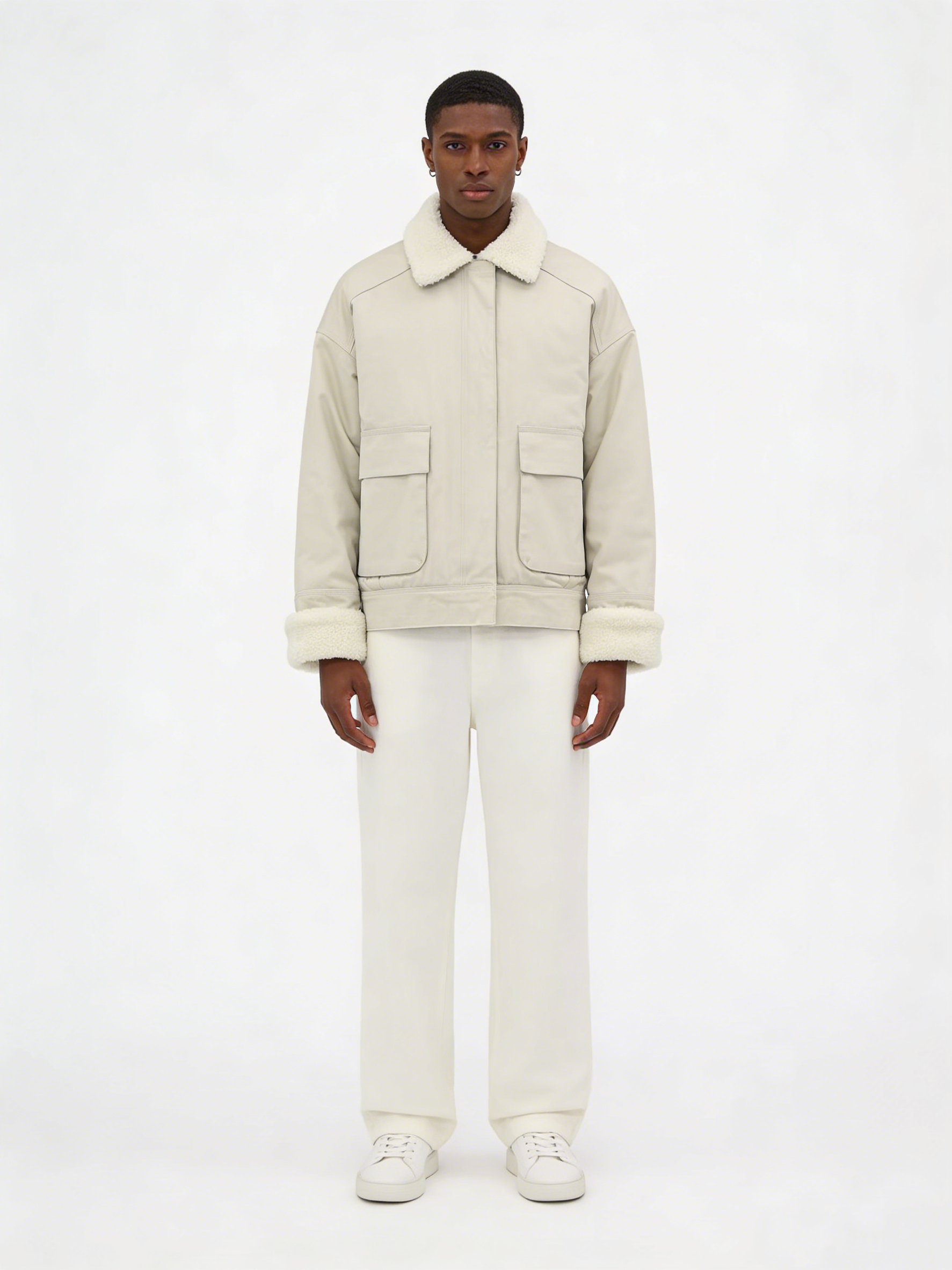 - Lining & Trim: High-density faux shearling for collar and cuffs, fluffy and warm, skin-friendly, easy to care for, eco-friendly alternative to real shearling.