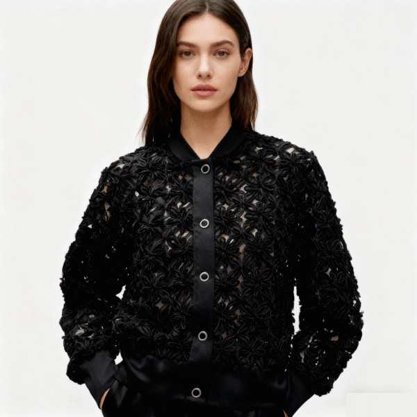 Women’s Black Chiffon Spring and Summer Coat Jacket 3D Hollow Flowers